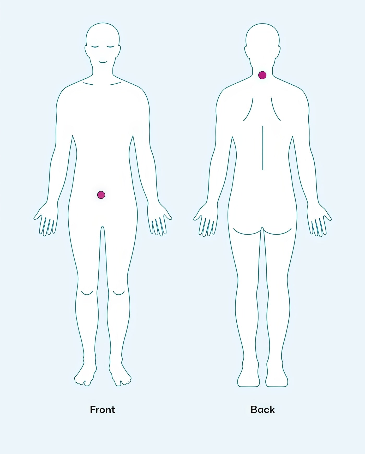 Place one LifeWave X39 patch on the body, using one of the locations shown. Apply the patch to clean, dry skin in the morning. Patches may be worn for up to 12 hours before discarding. Keep well hydrated while using this product.